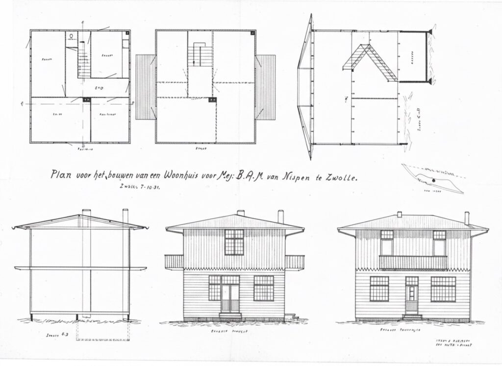 In 1920 bestelde jonkheer Lambertus (L.) van Nispen dit huis mogelijk uit een folder van de firma Wohnhäuser aus Holz – Christoph Unmack AG, Niesky. Het werd prefab aangevoerd via het spoor en binnen enkele weken winddicht opgebouwd — in een tijd waarin vrijwel alles nog met de hand werd gedaan.