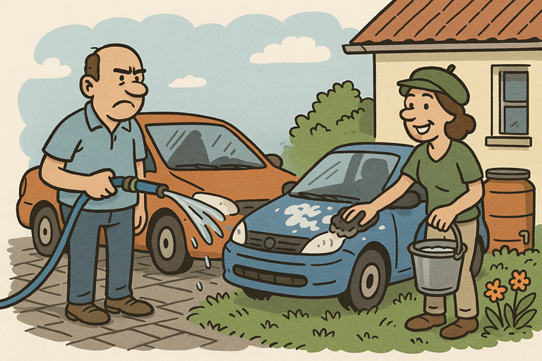 Gebruik dat water voor auto, planten, patio, ramen.