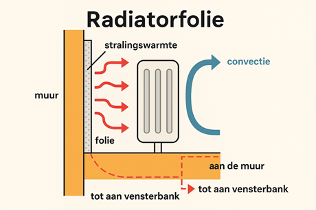 Radiatorfolie is gemaakt om stralingswarmte die richting de muur gaat terug te kaatsen.